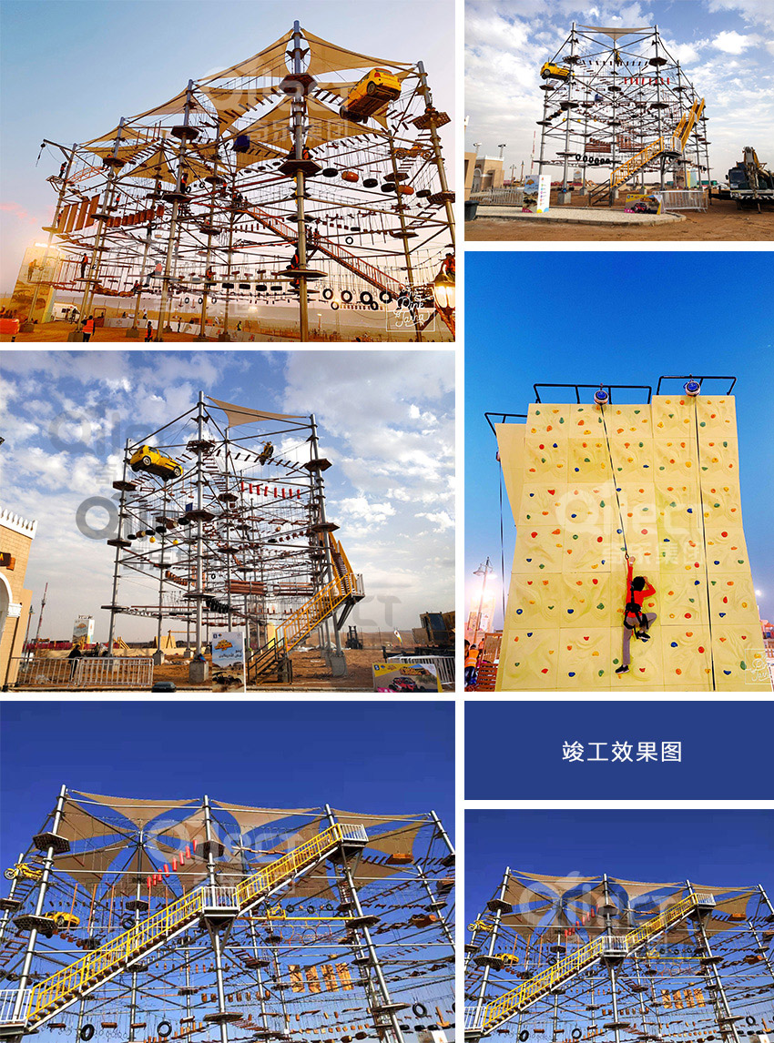 奇樂游樂是游樂設備實力廠家,美國 Galaxy Multi Rides是奇樂在美國做的忍者道拓展項目,是一個在戶外搭建起來的拓展項目,室內大人,青少年挑戰(zhàn),游玩的項目。本忍者道拓展有攀巖墻,空中攀爬挑戰(zhàn)關卡都能多種拓展項目,是由奇樂優(yōu)秀的設計師團隊設計出來的方案,忍者道拓展項目在國外是非常流行的一種項目之一,它是可以鍛煉游玩者的體能,需要有優(yōu)秀的身體素質,也能鍛煉游玩者的身體。