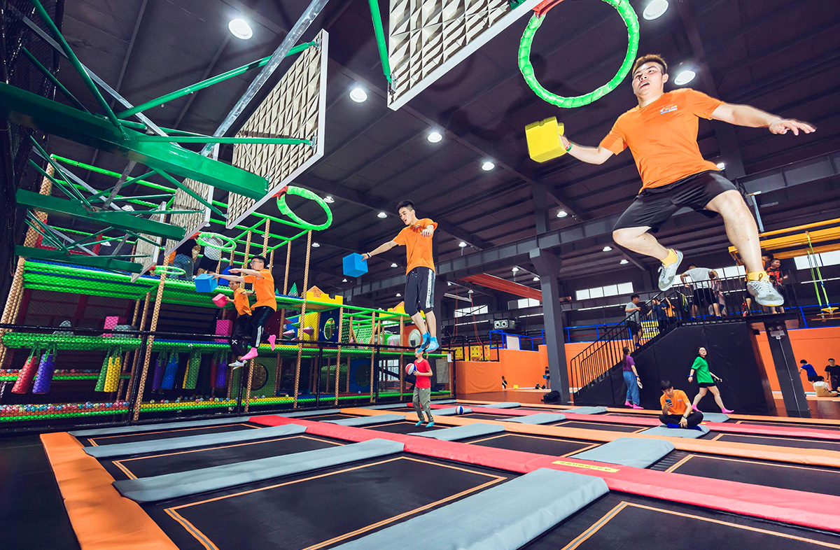 結合多種娛樂運動項目的體驗式室內運動公園,場館設有自由蹦床區(qū)、拓展蹦床區(qū)、扣籃蹦床區(qū)、蹦床體操館、Party room等,為多個年齡層次的人群提供了豐富多彩的蹦床運動體驗,同時也給公司團隊拓展以及生日主題活動舉辦提供了一個新穎另類的活動場所。