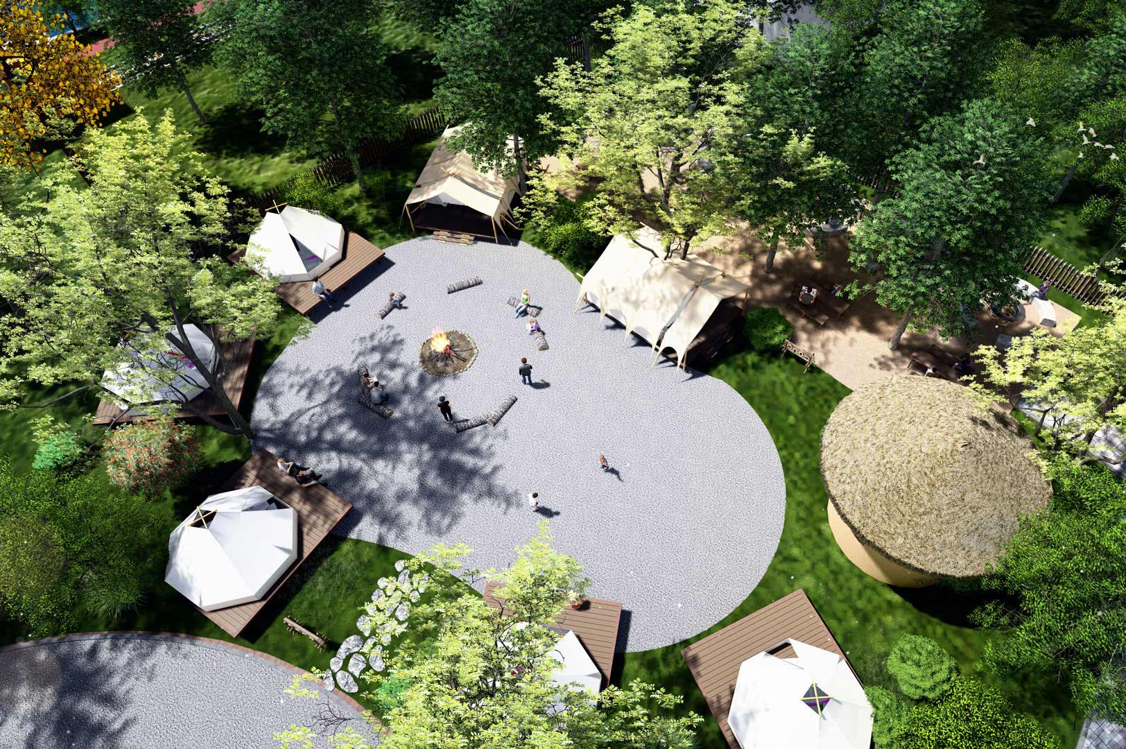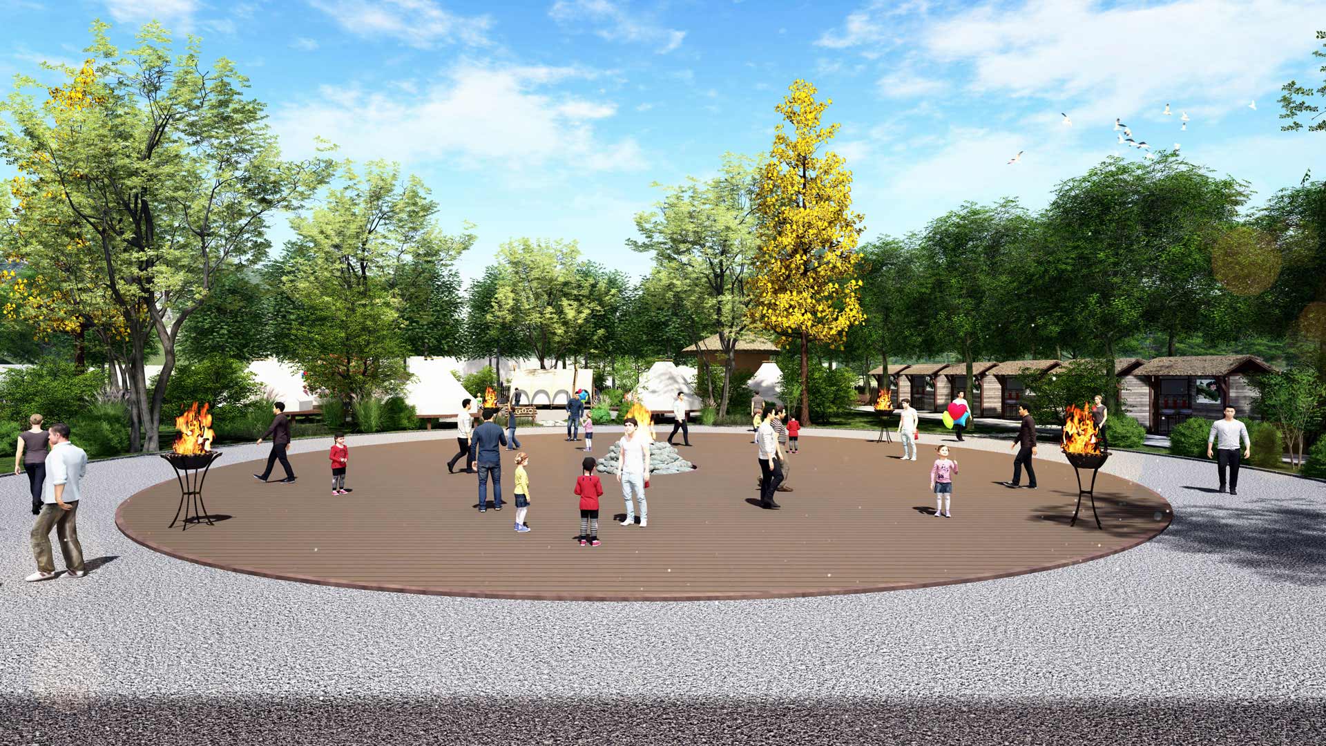 場地以農(nóng)田和樹林為主,毗鄰河流,并且有一條小溪流途徑場地中央,已建公共衛(wèi)生間,地勢較為平坦,環(huán)境優(yōu)美。